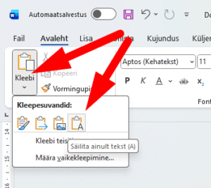 Päris sageli juhtub, et vajalik tekst tuleb internetist kopeerida ja oma dokumenti kleepida. Paraku on internetis tekst vorminguga, mida me ei soovi kasutada. Samuti tulevad kaasa teksti sees olevad hüperlingid (allajoonitud sõnad, millele klõpsamine avab mõne veebilehe). Kes ei tunne vorminguta kleepimise või vormingu eemaldamise nippe võib avastada, et üksipulgi uue vormingu rakendamine on tüütu …